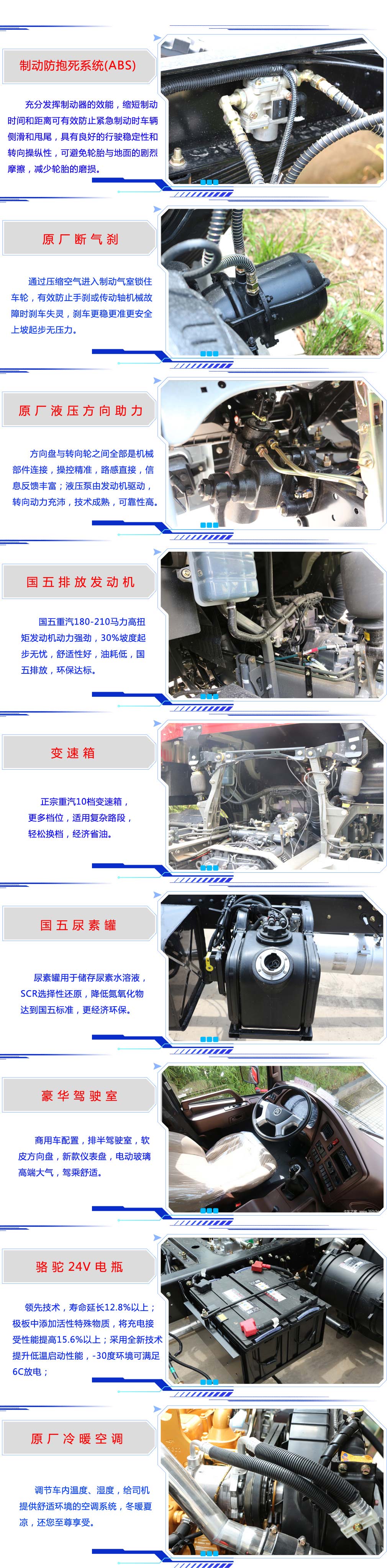 | 其他 | 1、罐體有效容積11.42立方米;運輸介質:丙酮水溶液,密度:800千克/立方米,橢圓罐體尺寸為(mm):5000×2300×1480,選裝矩圓罐體時尺寸為4800×2300×1520。 2、防護材料:Q235A碳鋼,連接方式:左右側面及后下部防護均采用焊接連接,后部防護斷面尺寸(mm):150×50,后部防護離地高度(mm):480。3、ABS控制器型號為 4460046300,生產(chǎn)廠家為威伯科汽車控制系統(tǒng)(中國)有限公司。4、文字噴涂位置和車輛顏色可變化。5、選裝不帶灑水平臺和選裝噴霧機組。 | ||