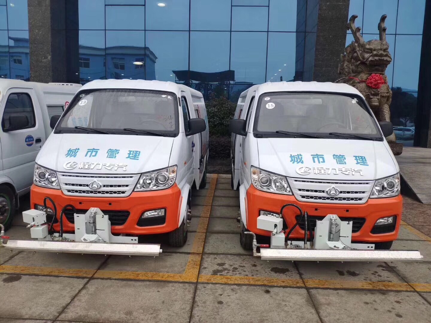 該車型選用長安新款駕駛室,長安98匹馬力國五發(fā)動機(jī),5檔變速箱,前盤后鼓剎車,175/70R14LT真空胎。水箱容積1.5m³,選用意大利AR50.15進(jìn)口高壓泵,壓力10MPA,流量:50L/min,本田13HP電啟動汽油機(jī),15米高壓管,自動回位卷管器。