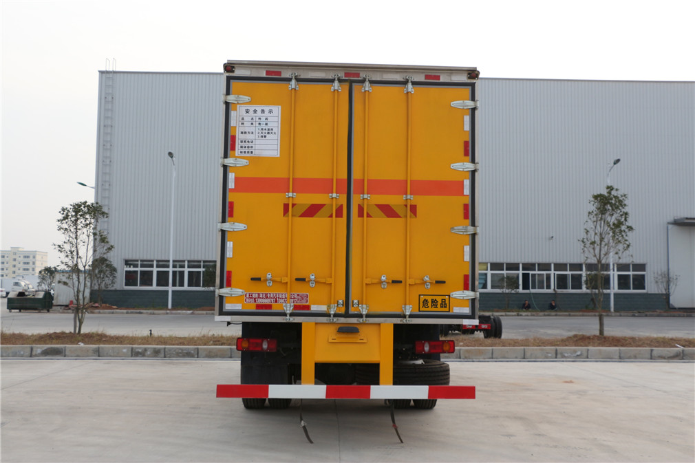 | 其他 | 厢体顶部密封,不可开启.厢体可选装不同形式的侧开门或无侧门.随底盘选装驾驶室。运送爆炸品的品名:黑火药,压缩黑火药,电(非电)引爆雷管,爆破炸药,导爆索,点燃导火索.运送爆炸品的项号:1.1D,1.1D,1.1B,1.1D,1.4G.发动机ISD210 50,ISD190 50,ISD180 50分别对应的油耗关系为:27.3,27.4,27.6.当整车长度为8580mm时,轴距4700mm、5000mm与后悬2450mm,2150mm一一对应.当整车长度为8280mm时,轴距4500mm、4200mm与 | ||