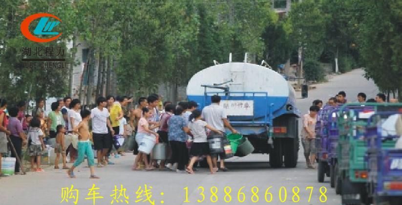 下圖是由湖北程力派出的東風140送水車村民們紛紛排隊來取水......
