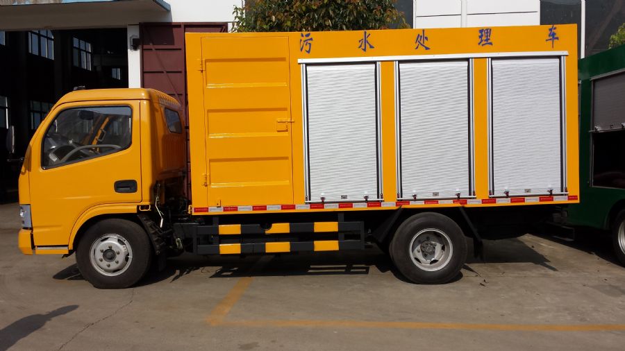 程力污水處理車的型號為CLW5040TWC4,采用東風銳鈴底盤,整車長為5.995米、寬為1.99米,高為2.65米?缮纤{牌,有免征公告,能夠在市內(nèi)使用。