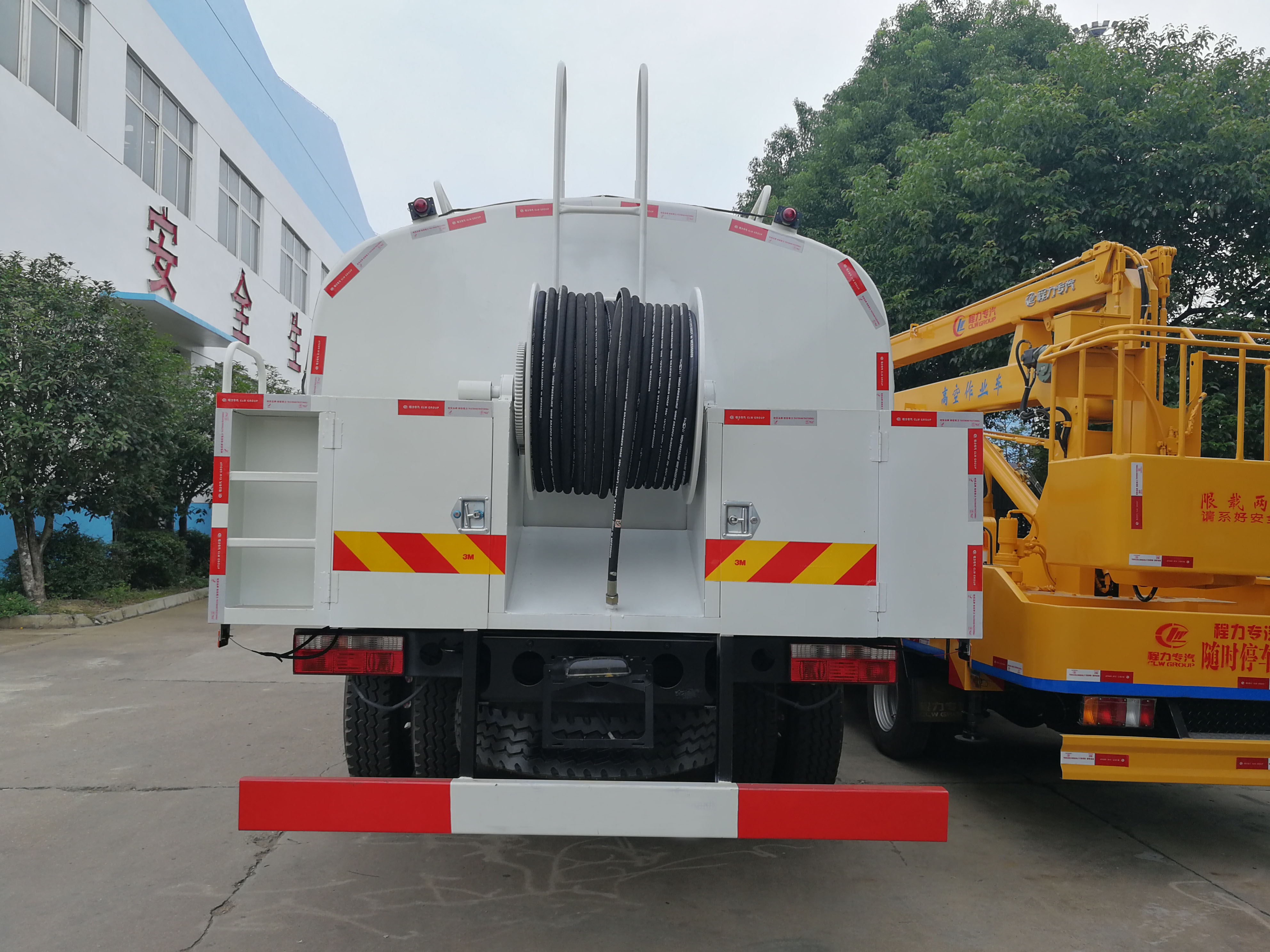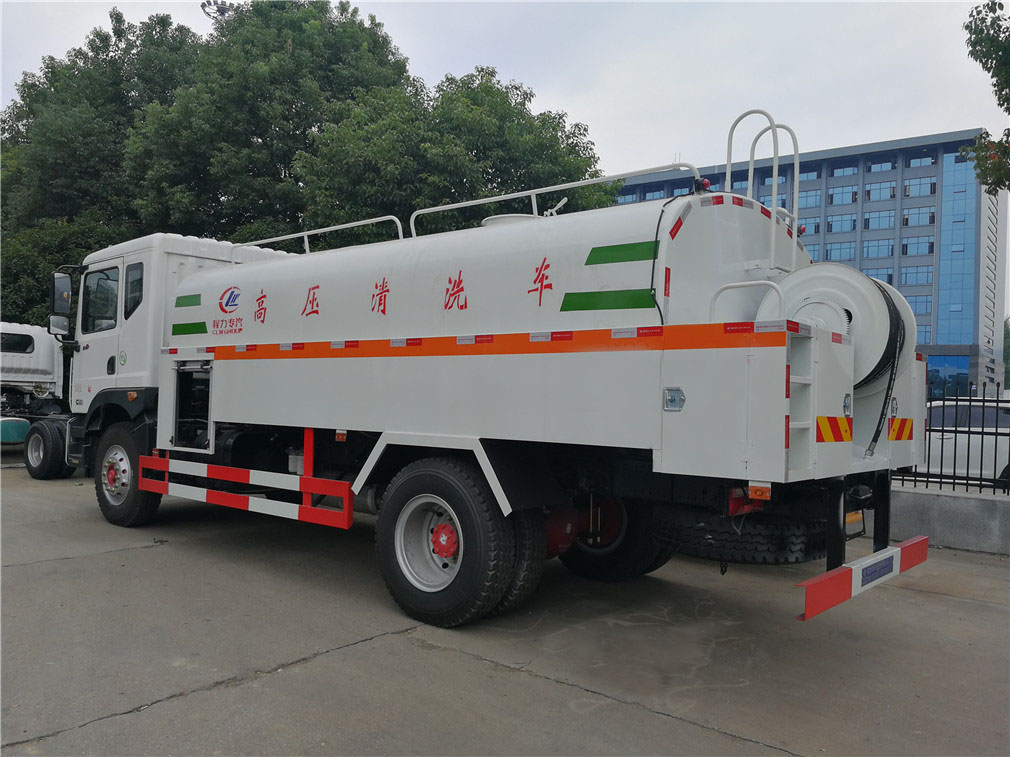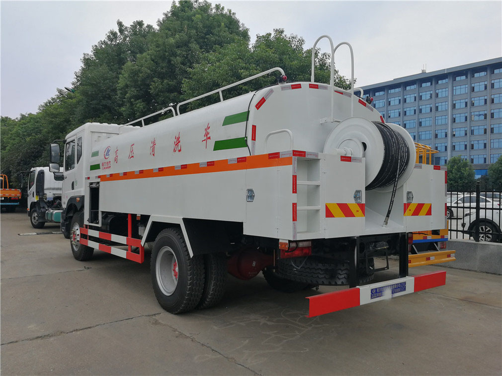 | 其他 | 该车通过取力器带动高压泵工作,高压泵将普通的水转化为高压低流速的水,然后输送到高压管路,使其以一定的能量到达高压喷嘴进行清洗工作.罐体有效容积9.7立方米,罐体外形尺寸(长度×长轴×短轴)(mm):3800(罐体实际总长5000,其中1200用于安装高压泵)×2300×1500,选装前部喷水装置时,整车长度为(mm):9100,前伸为(mm):950,选装后卷盘以及后部外形变化,选装后轮挡泥板,仅选用轴距(mm):4500,防护材料:Q235A碳钢,连接方式:左右侧面与箱体底面采用焊接连接,后下防护采用焊 | ||