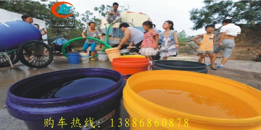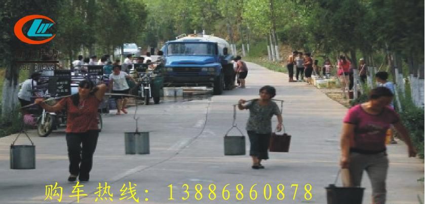 下圖是由湖北程力派出的東風140送水車村民們紛紛排隊來取水......