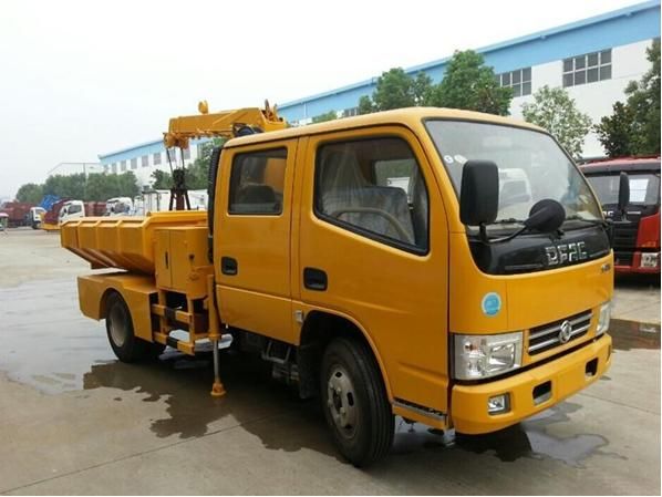 車廂可自卸,設計300升水箱及沖洗作業(yè)地面水槍和洗手水籠頭,吊機用隨車吊的吊機進行內(nèi)部結(jié)構(gòu)改裝而成,貨廂后側(cè)部設計工具箱。 |