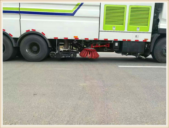 在底盤前后軸之間,車架兩側對稱位置各布置一個可升降、可外伸的立掃掃盤,掃盤旋轉由液壓馬達驅動,轉速可調。 |