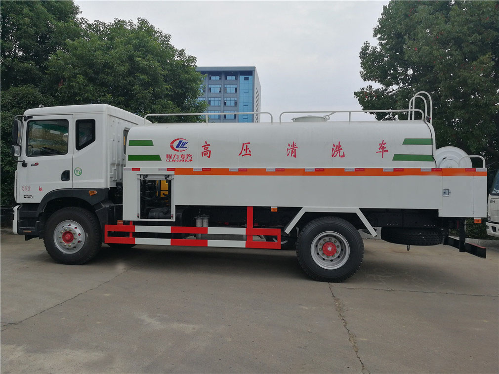 | 其他 | 该车通过取力器带动高压泵工作,高压泵将普通的水转化为高压低流速的水,然后输送到高压管路,使其以一定的能量到达高压喷嘴进行清洗工作.罐体有效容积9.7立方米,罐体外形尺寸(长度×长轴×短轴)(mm):3800(罐体实际总长5000,其中1200用于安装高压泵)×2300×1500,选装前部喷水装置时,整车长度为(mm):9100,前伸为(mm):950,选装后卷盘以及后部外形变化,选装后轮挡泥板,仅选用轴距(mm):4500,防护材料:Q235A碳钢,连接方式:左右侧面与箱体底面采用焊接连接,后下防护采用焊 | ||